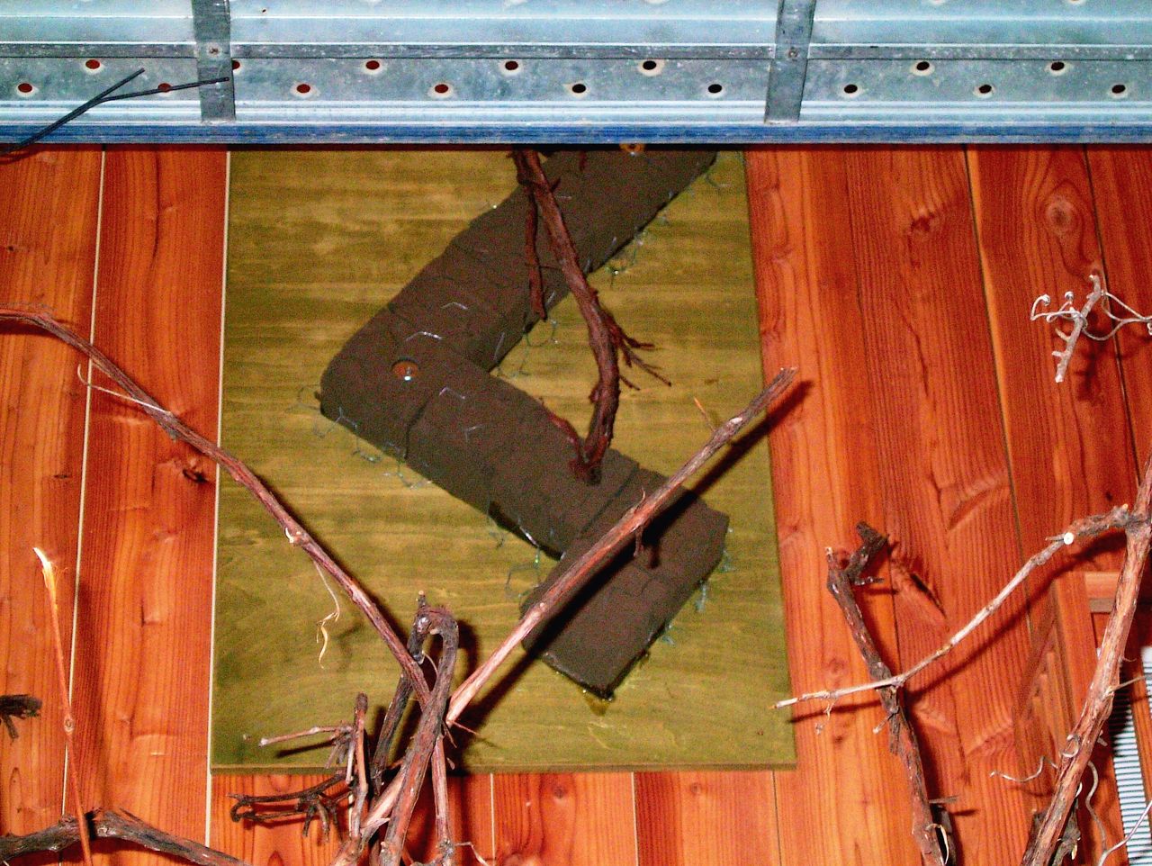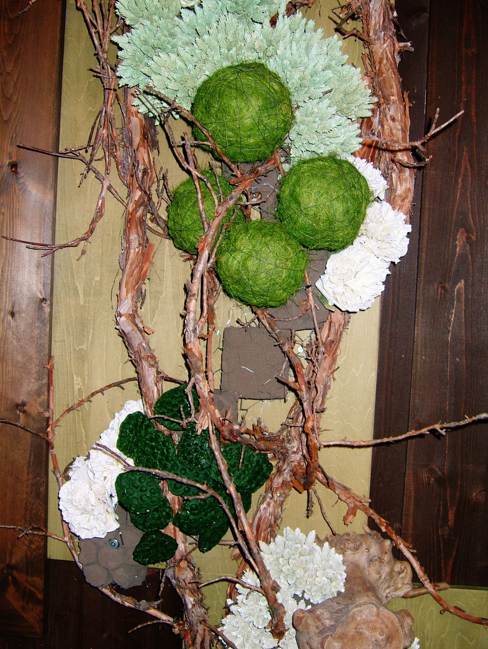 このツルは山に取りに行きました。トライフラワーととてもマッチします。両方とも自然のものですからね