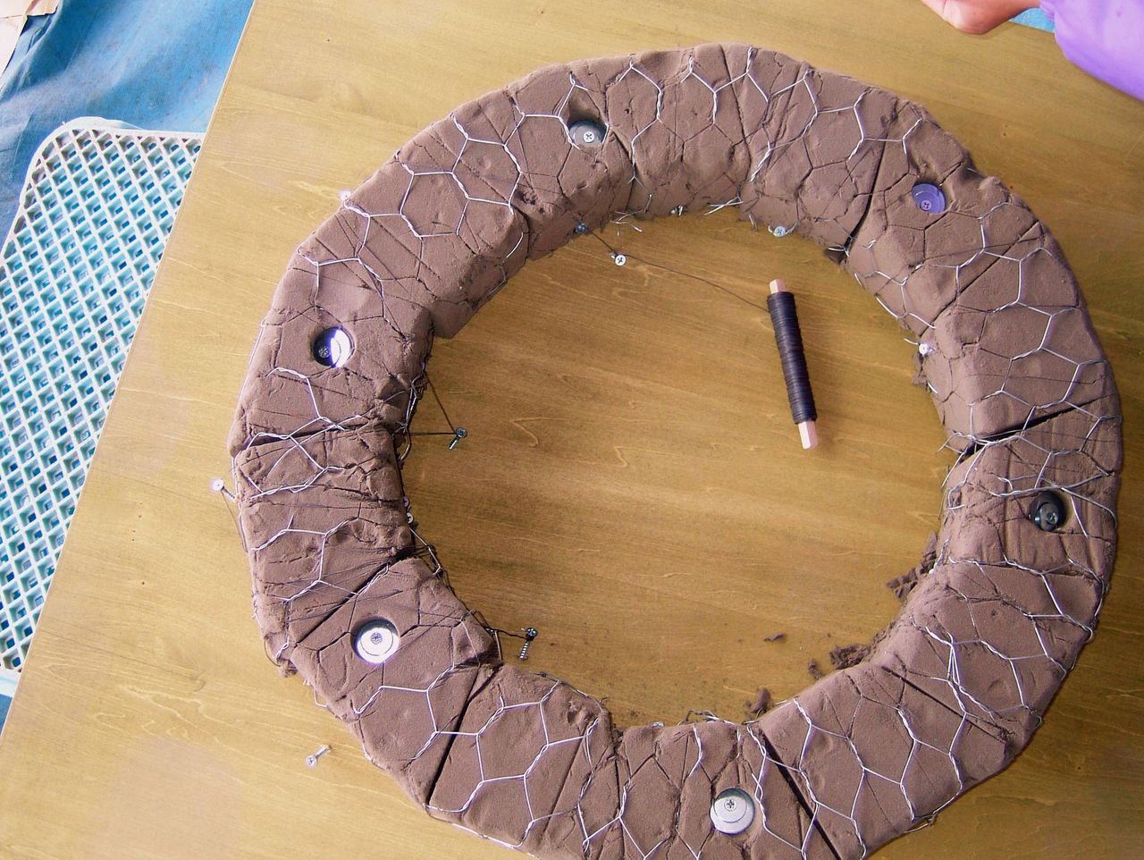 これはリースではありませんが、壁に取り付ける装飾です。フローラルフォームの固定方法は同じです。