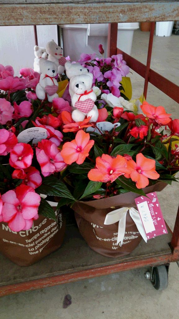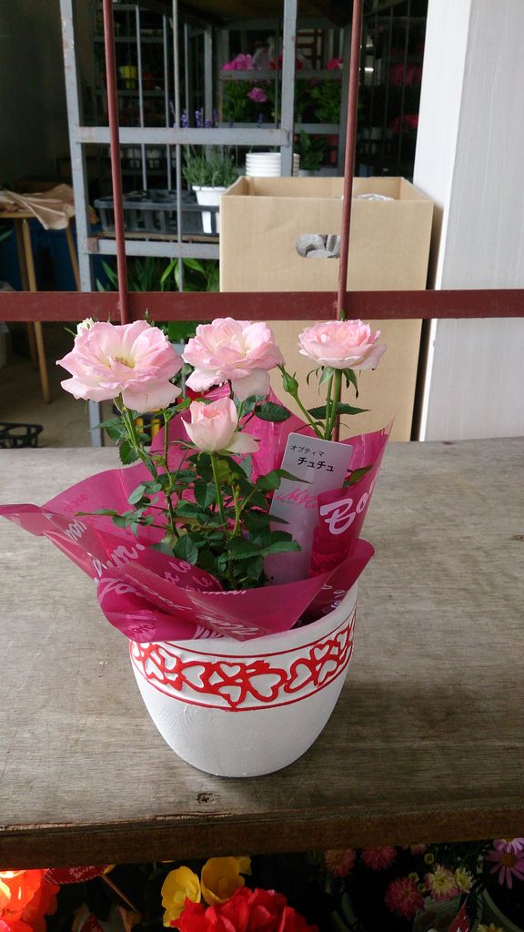 カーネーション以外は市場からの仕入れになりますが、定番の品種をあげてみると、バラ、クレマチス、カラー、ブーゲンビレアなどたくさんの種類があります。その中に、さらに色、形、大きさ、花びらの形、価格等の要素が加わると、鉢植えの種類は無数にあると言って良いです。