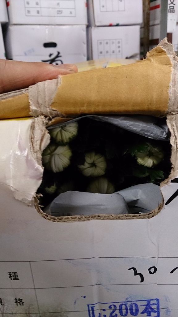 前回に引き続き商社経由のベトナムSP菊と同時入荷だったため、コンテナ2台から花を降ろすのは非常に大変でした。